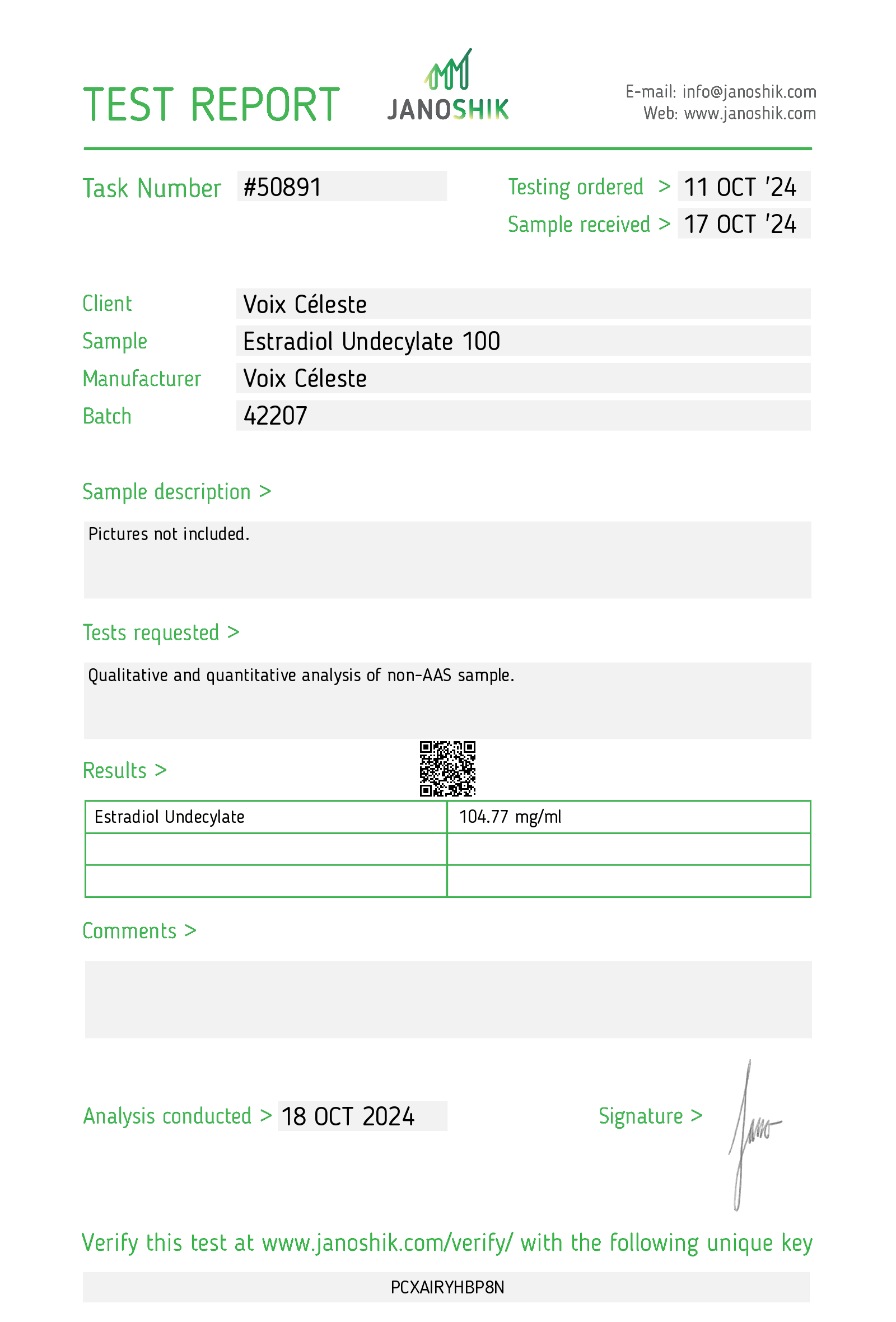 - Janoshik verification key: NHWMA5MM799K